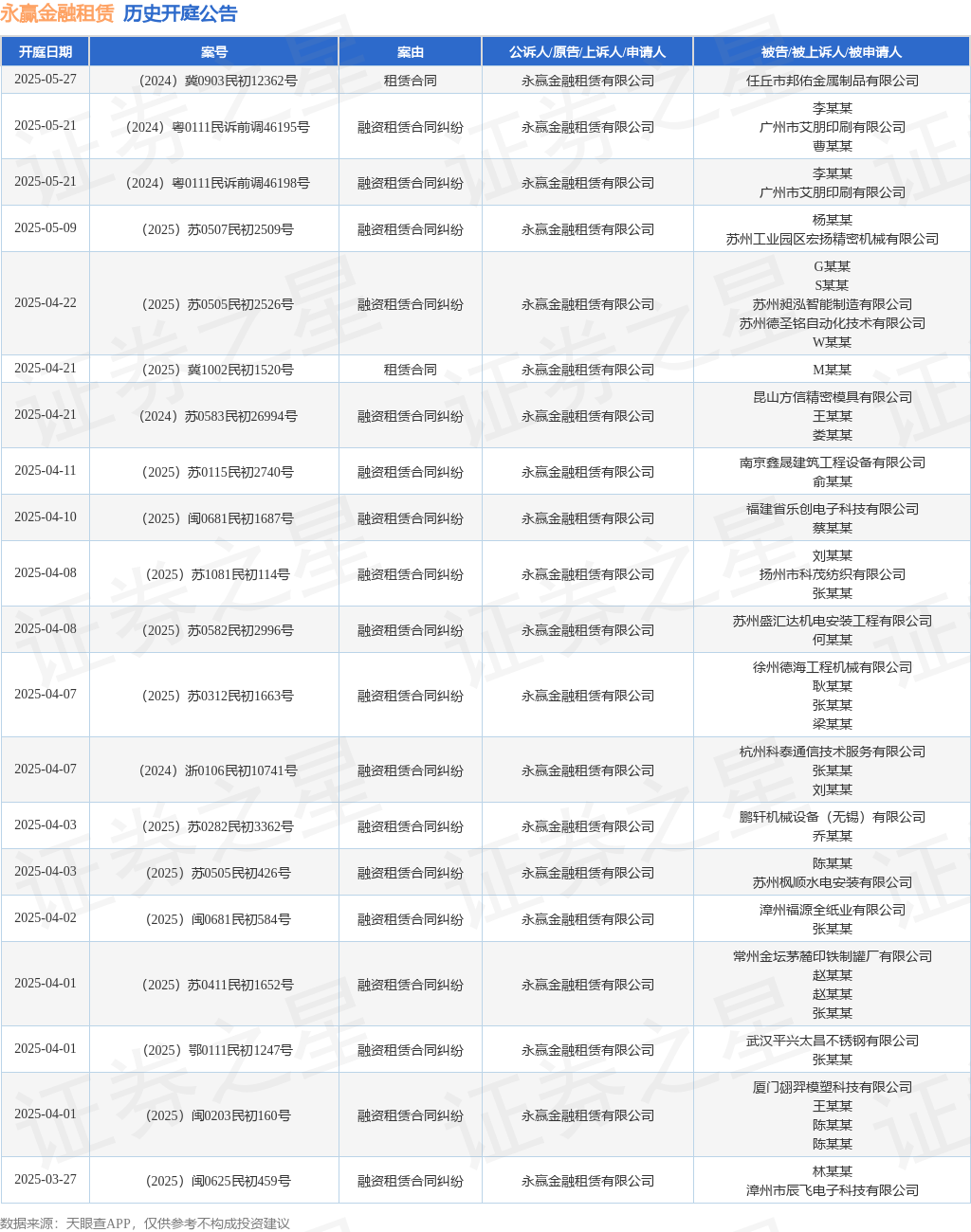 本站消息,根据天眼查APP显示,近日公布了一则永赢金融租赁有限公司作为原告/上诉人的开庭公告,详细内容如下: